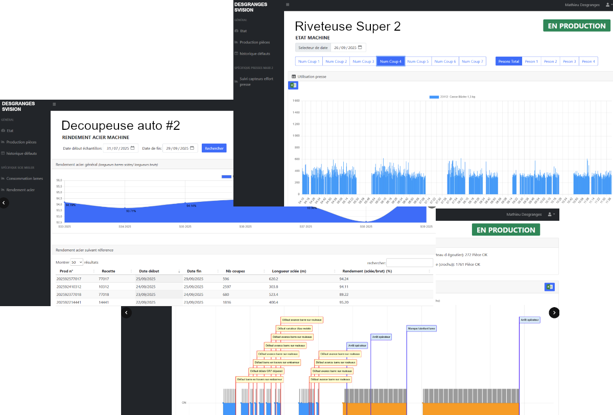 Déploiement d'IHM conviviaux et simples pour les opérateurs, pages plus poussés de suivi et paramétrage pour les techniciens habilités.